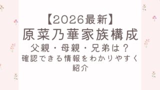 子役時代から活躍し、現在はドラマや映画でも存在感を放っている原菜乃華さん。自然体の演技や透明感のある雰囲気から、「家族構成はどうなっているの?」「父親や母親はどんな人?」と気になる方も多いようです。芸能人の家族は公表されないことも多く、“知...