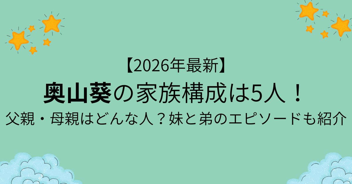 この記事では、公開されている情報をもとに、奥山葵さんの家族構成やご両親・兄弟について丁寧にまとめました。