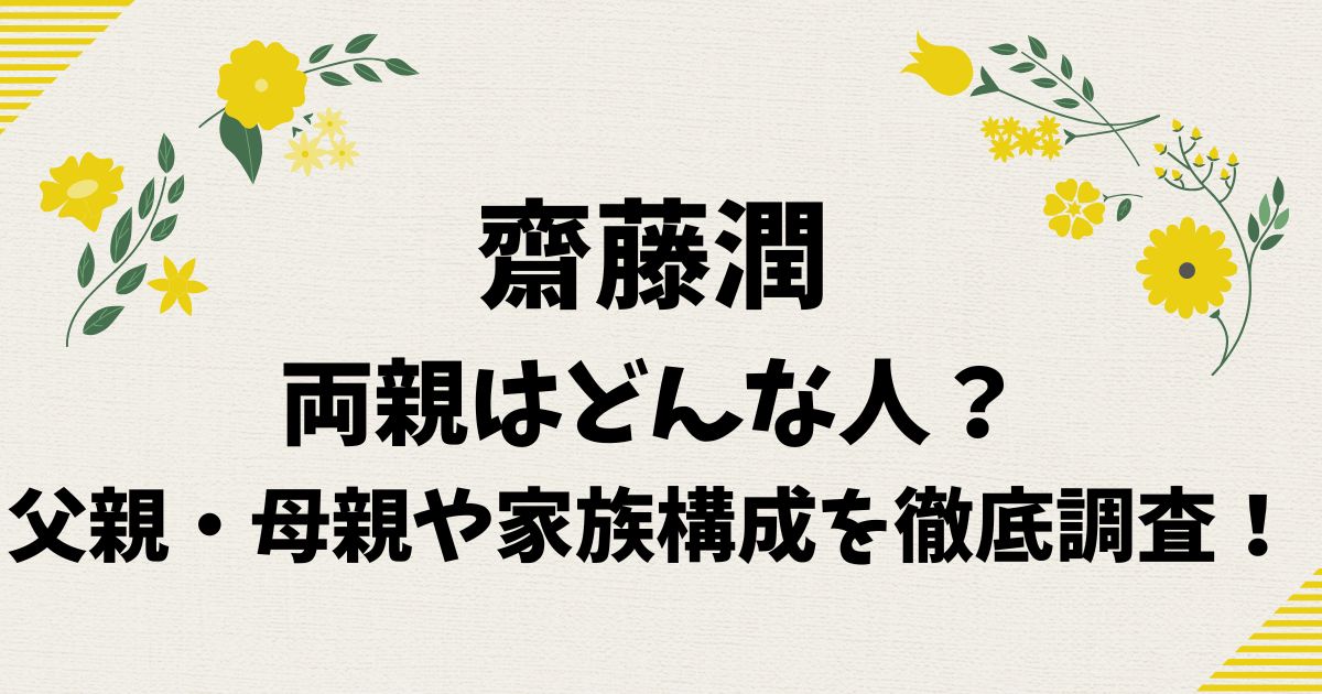 この記事では、ネット上で公開されている情報をもとに、齋藤潤さんの家族構成や父親・母親など両親についてまとめました。